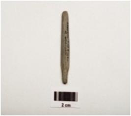 | Description / विवरण | A point made with himalyan soft stone, both ends one partly broken, rectangular in section, well polished surface. |