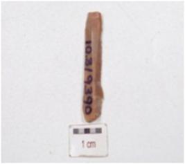 | Description / विवरण | A microlithic chert blade with a mid-ridge on the dorsal side, use marks along the cutting edges and triangular cross-section. |
