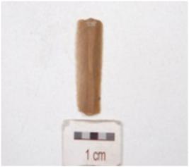 | Description / विवरण | A parallel sided blade made on chert, mid-ridge on dorsal surface, use wear edges and diffused bulb on ventral. |