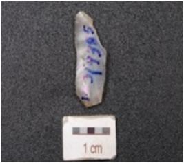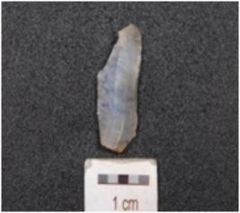 | Description / विवरण | A parallel sided blade made on chalcedony stone, two-ridge on dorsal surface, use-wear edges and diffused bulb on ventral. |