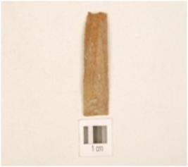 | Description / विवरण | A parallel sided chert blade with double ridge on dorsal, trapezoidal cross-section and use-wear marks on cutting edge. |