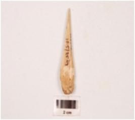 | Description / विवरण | A small bone borer with rectangular in section, slightly broken at one end, pointed at other end, porous at end point, polished both sides, smooth surface. |