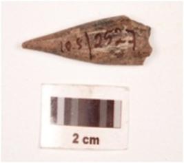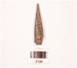 | Description / विवरण | Fragment of bone point with plano-convex in section, slightly broken at one end, pointed at other end, heated, polished both sides, smooth surface. |