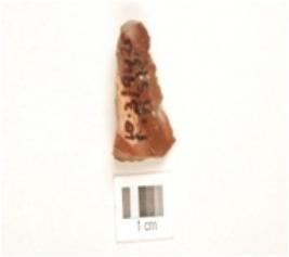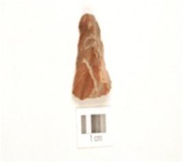 | Description / विवरण | A chert blade with prominent mid-ridge on dorsal, prepared platform, bulb on ventral, use wear marks on cutting edge and triangular cross-section. |