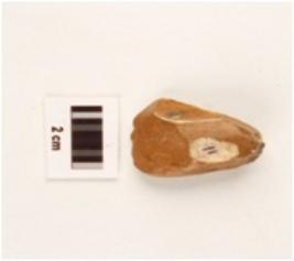 | Description / विवरण | A stone core made on chert, flake marks on surface along with the prepared platform. |