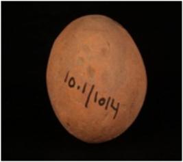 | Description / विवरण | Handmade terracotta round shaped sling ball, small in size, surface is treated with a wash in dull red colour, well baked and smooth surface. |
