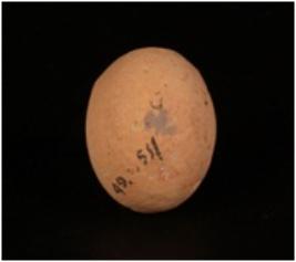 | Description / विवरण | Handmade terracotta round shaped sling ball, small in size, surface is treated with a wash in buff colour and partly broken. |