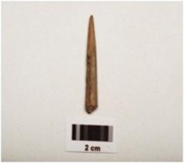 | Description / विवरण | Fragment of a point made with himalyan soft stone, one end is sharp pointed and other is broken, circular cross section. |