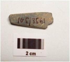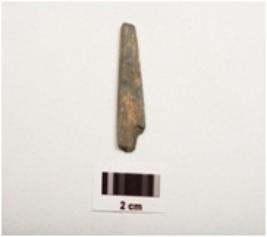 | Description / विवरण | Fragment of a point made with himalyan soft stone, one end is shap partly broken other one is flat and broad well polished surface, rectangular cross section. |