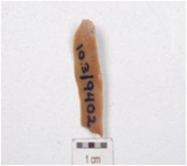 | Description / विवरण | A microlithic chert blade with use-marks along the cutting edges, triangular cross-section and ridge on dorsal. |