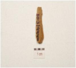| Description / विवरण | Fragment of a made on chert, prominent bulb on ventral single ridge on dorsal and triangular cross section. |