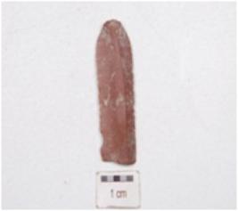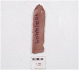 | Description / विवरण | A parallel sided microlithic chert blade, mid-ridge on the dorsal side, use marks along the cutting edges and triangular cross-section. |