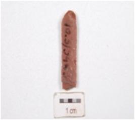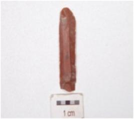 | Description / विवरण | A parallel sided blade made on chert, end struck flake, diffused bulb on ventral sharp cutting edges, use wear marks on cutting edges two prominent ridges on dorsal and trapezoidal cross section. |