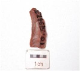 | Description / विवरण | A fragment of blade made on chert, end struck flake, bulb absent, broken one end, use wear marks on cutting edge, blade scars on dorsal surface and irregular plano convex cross section. |