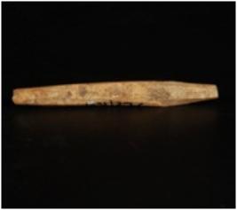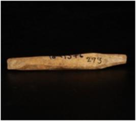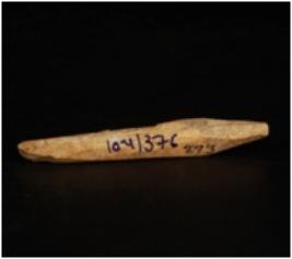 | Description / विवरण | Shell bone point, oblique in shpe, tapering from one edge and other is broken. |