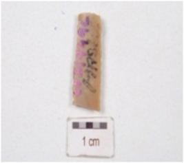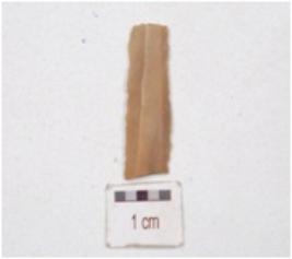 | Description / विवरण | Fragment of a parallel sided blade, made on chert, broken along both the ends, double ridge on dorsal side and use-wear marks along cutting edges. |