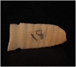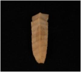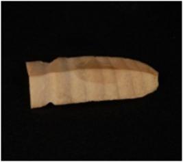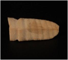 | Description / विवरण | chert blade with a mid ridge on dorsal surface. . Use- wear marks on both the cutting edges. |