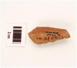 | Description / विवरण | A stone flake made on chert, dorsal side has flake diffused bulb on ventral side. |