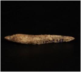 | Description / विवरण | Bone point, tapering in shape, pointed from one edge and other edge is broken. |