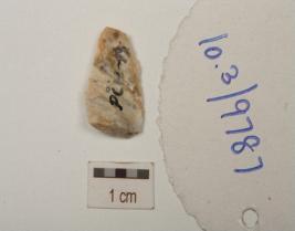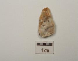 | Description / विवरण | End struck chert flake along cutting edges, bulb on ventral and chipping dorsal surface. |