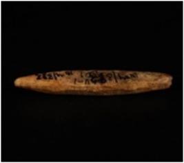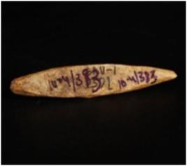 | Description / विवरण | Bone point, oblique in shape, tapeing from the edge and other edge is broken. |