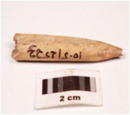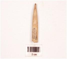 | Description / विवरण | Fragment of a bone point with plano-convex in section, slightly broken both end polished both sides smooth surface. |