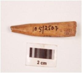 | Description / विवरण | Fragment of a bone point with slightly broken both ends, rectangular in section, polished both sides, smooth surface. |