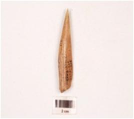 | Description / विवरण | Fragment of a bone point, slightly broken at one end, pointed at other end, plano-convex in section polished both sides, smooth surface. |