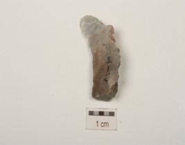 | Description / विवरण | Utilized flake made on end struck chert flake, use wear marks along cutting edges and flake scars on dorsal surface. |