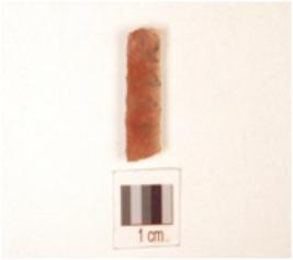 | Description / विवरण | A chert blade, flake scars on the surface, prepared platform on the proximal end and use wear marks on the cutting edges. |