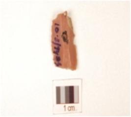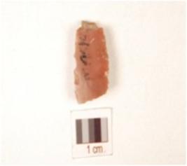 | Description / विवरण | A chert blade, flake scars on the broken surface and use wear marks on the cutting edges. |