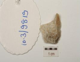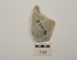 | Description / विवरण | Side struck chert flake, chipping dorsal surface and positive bulb on ventral surface. |