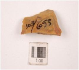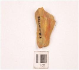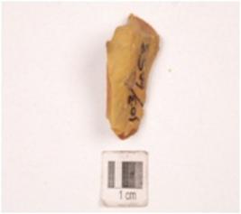 | Description / विवरण | Chert flake with two flake scars and smooth surface. |