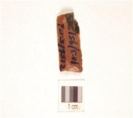 | Description / विवरण | A chert blade with triangular cross section, use-wear marks along the cutting edge, prepared platform, bulb absent and broken from distal end. |