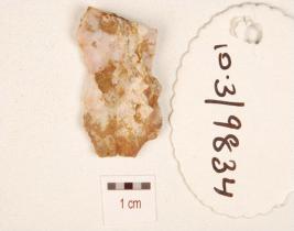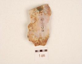 | Description / विवरण | A chert end struck flake with flake scars on dorsal, cortex on dorsal, prepared platform and use-wear marks on edge. |