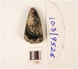 | Description / विवरण | A chert core with five blade scars, flake scars on surface and prepared platform. |