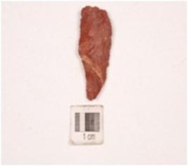 | Description / विवरण | A point made on a chert flake with use-wear marks along the cutting edge and a mid-ridge on dorsal side. |