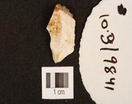 | Description / विवरण | A chert utilized flake with flake scars on dorsal and use-wear marks on edge. |