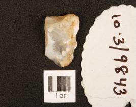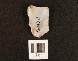 | Description / विवरण | A chalcedony flake with flake scars on dorsal. |