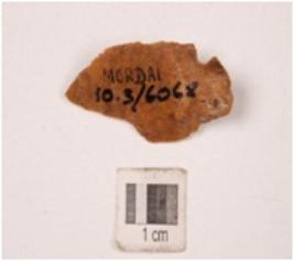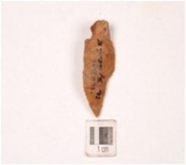 | Description / विवरण | A point made on a chert flake with use-wear marks along the cutting edge and a mid-ridge on dorsal side. |