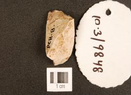 | Description / विवरण | A chert core with four blade scars on surface. |