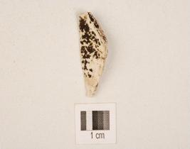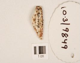 | Description / विवरण | A chert blunted blade with triangular cross section and use wear marks on right cutting edge. |
