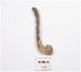 | Description / विवरण | Fragment of a copper nail, rectangular cross-section and green-incrustation on surface. |
