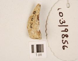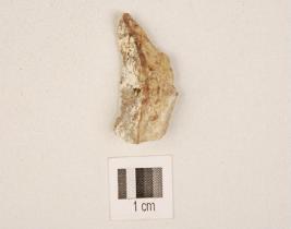 | Description / विवरण | A chert utilized flake with end struck flake, flake scars on dorsal, prepared platform, bulb on ventral and use wear marks on edge. |