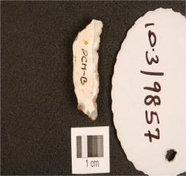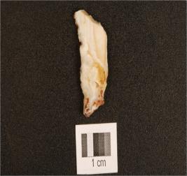 | Description / विवरण | A chalcedony point with flake scars on dorsal, broken pointed tip and use wear marks on cutting edge. |