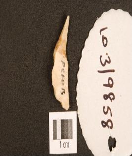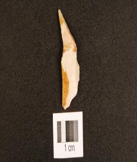 | Description / विवरण | A chert point with flake scars on dorsal, pointed on end and use wear marks on cutting edge. |