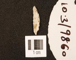| Description / विवरण | A chert point with pointed both ends and use wear marks on right cutting edge. |