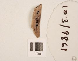 | Description / विवरण | A chert lunate with pointed both ends, use wear marks on cutting edge and triangular cross-section. |