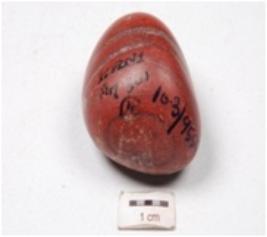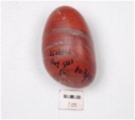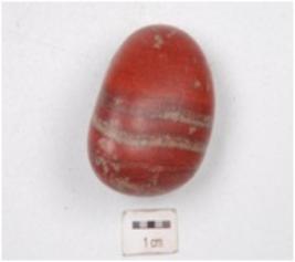 | Description / विवरण | A pebble, uneven shape and smooth surface, natural circular pattern on surface and red in colour. |