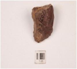 | Description / विवरण | A chert core with flake scars on the surface and partly intact cortex. |
